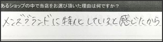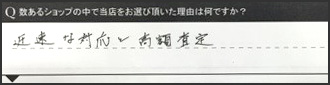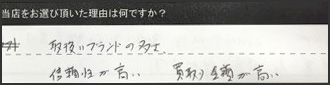 数あるショップの中で当店をお選びいただいた理由はなんですか?