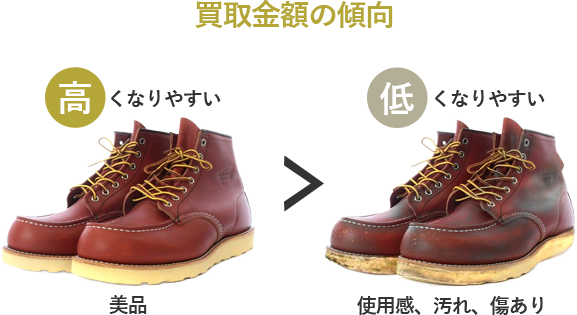 ソールの減りが目立つ場合は、ソール張替していただいた方が高いお見積りをご提示できる場合がございます。